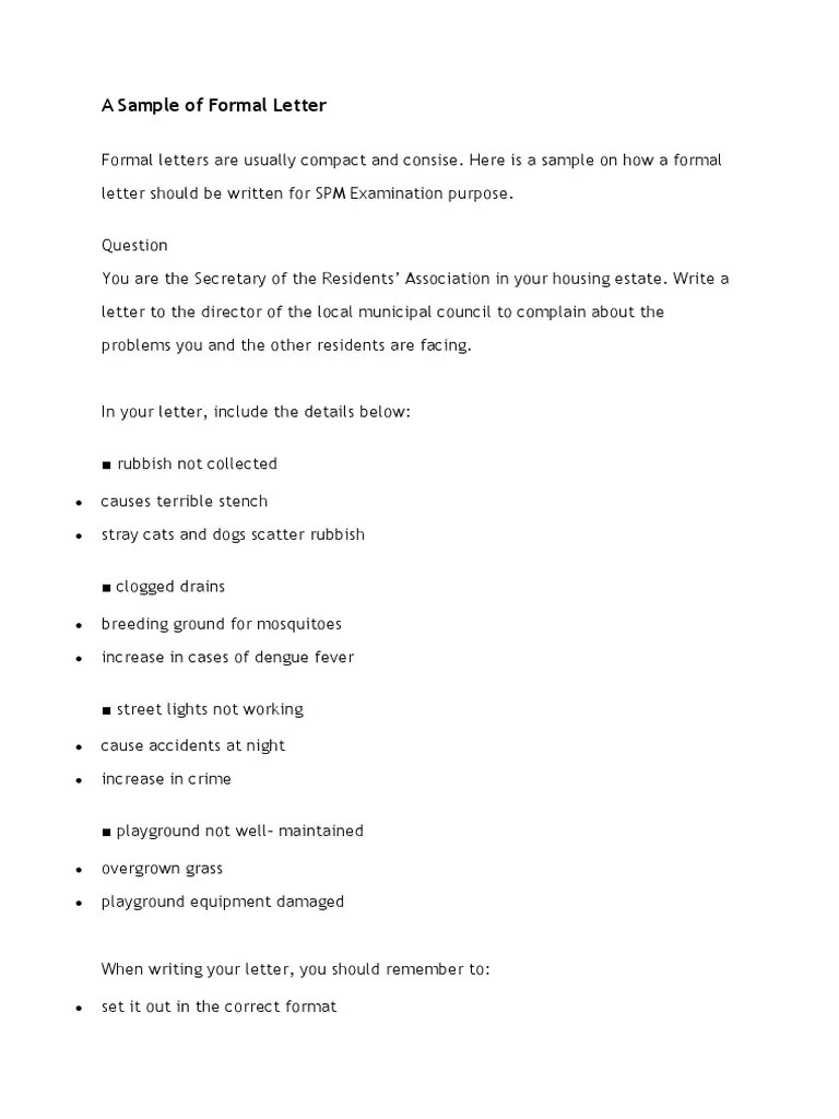 A formal complaint is backed by a legal document that sets out the facts and legal reasons that you believe are sufficient to support your claims against a party that entitles you to a remedy for the damages caused formal letter spm. This is a letter that you use to communicate your concerns and voice your issues to the authorities.